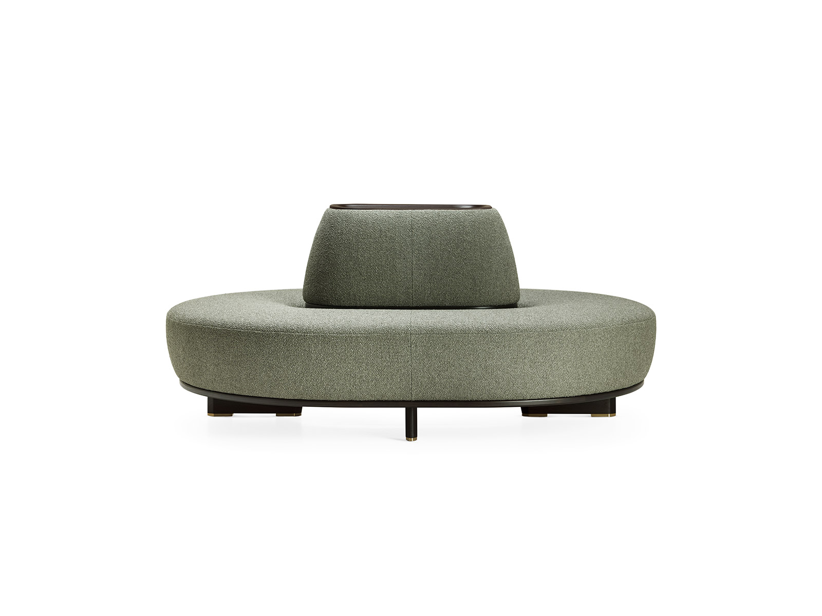 Icorondò evokes the soft, sinuous shapes typical of Icosofà in an upholstered sofa designed to become a centrepiece, especially in common areas, such as a hotel lobby or a reception area. It is characterised by an elliptical shaped structure in American walnut that extends upward to form the backrest. On top, it features a practical catchall tray made of wood...