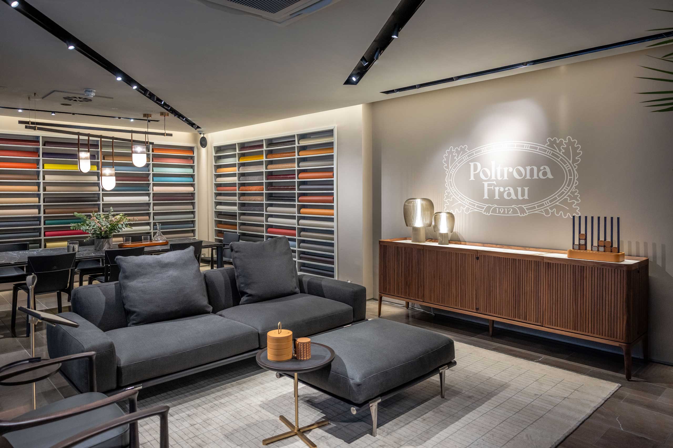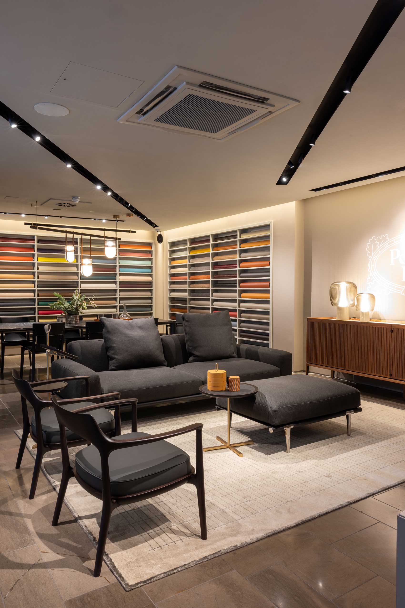 Qui gli elementi di arredo di Ceccotti Collezioni si integrano armoniosamente con quelli di Poltrona Frau, creando ambientazioni dall’eleganza senza tempo.