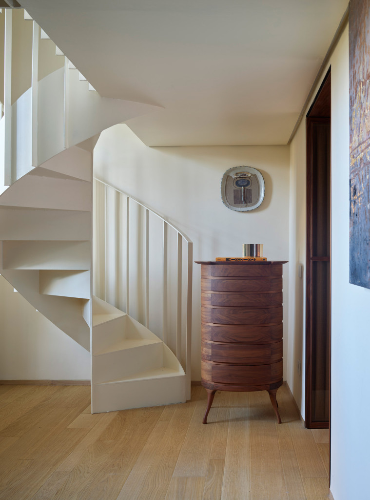 Progettata da Roberto Lazzeroni nel 1988, Bandeja è una cassettiera ovoidale, chic e inusuale. Con sette cassetti, di sette diverse dimensioni, è un pezzo cult del designer: ha una struttura interamente realizzata in massello di noce americano proposta in quattro eleganti finiture. Nata come mobile giorno per la sala da pranzo, si è evoluta, diventando un settimino per la zona...
