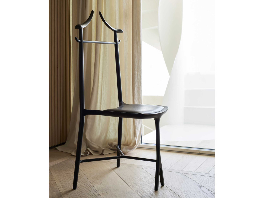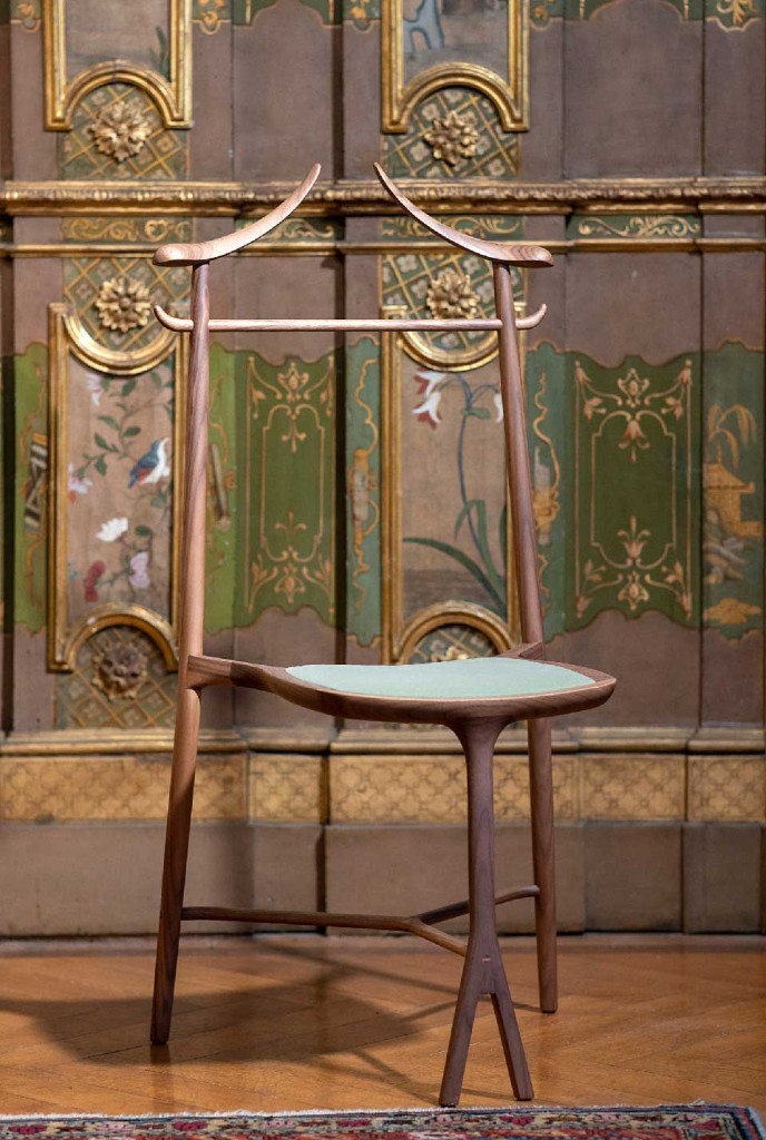 Disegnata nel 1998 da Roberto Lazzeroni, interessato all’arte concettuale e al Radical design. Chambre Close ripensa in modo originale l’idea di "servo-muto", trasformandolo in un complemento di arredo versatile e comodo.La sedia è leggerissima, infatti pesa meno di 3 chili. Ha una struttura essenziale in massello di noce americano che si ispira agli ideogrammi giapponesi. Si compone di sezioni minimal,...
