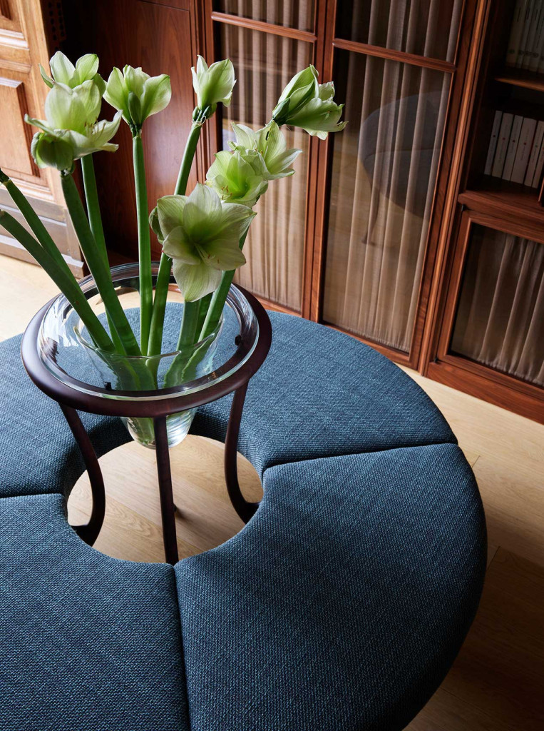 Disegnato da Roberto Lazzeroni nel 1992, il divano circolare Large Flower è stato pensato inizialmente per l'hospitality, ma ha trovato ben presto spazio anche in ambienti domestici di ampio respiro.Il design di Large Flower è estremamente sofisticato e i suoi segni distintivi sono l'assenza di uno schienale imbottito e la seduta circolare con al centro un'alzata in legno massello di...