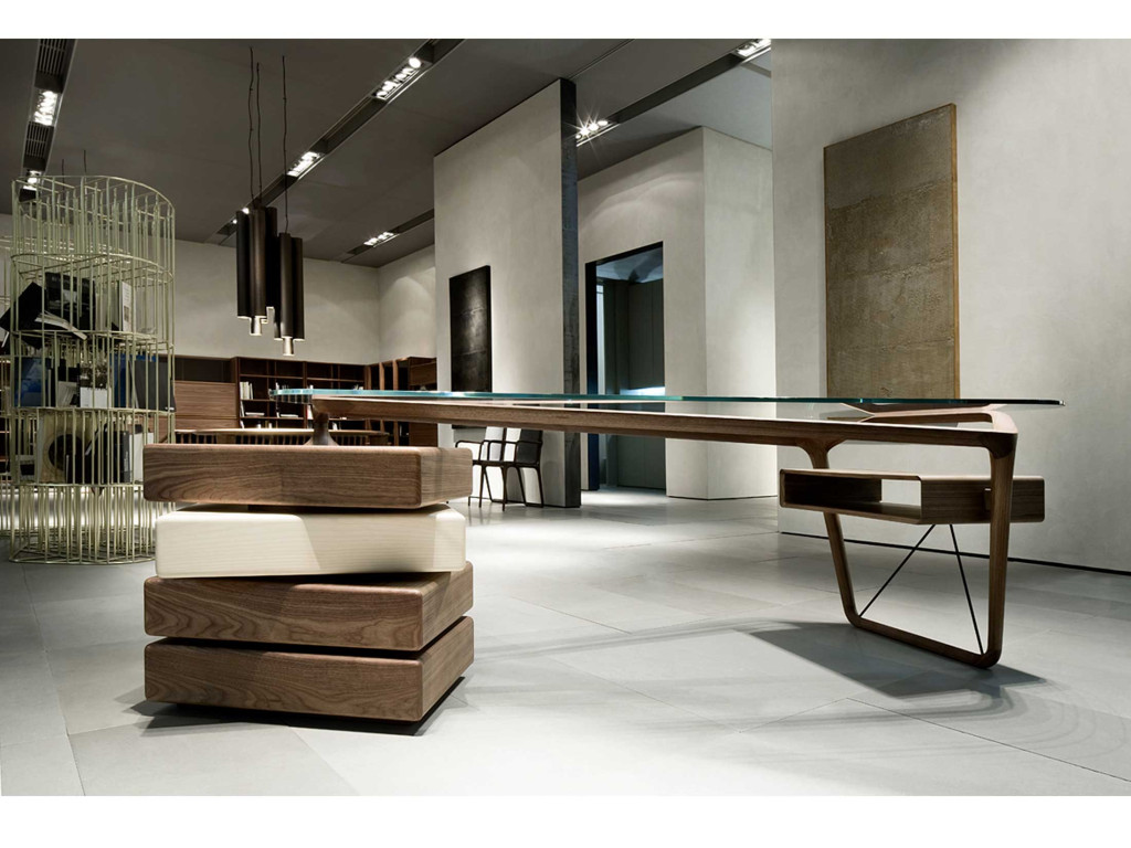 Disegnata da Noè Douchaufour-Lawrance nel 2011, la scrivania Omaggio si ispira nelle forme alla Cavour di Carlo Mollino. La silhouette asimmetrica e le linee essenziali ne esaltano la dinamicità, rendendolo un arredo senza tempo. Con la sua narrazione del lavorare contemporaneo, si inserisce in qualsiasi ambiente dal più tradizionale al più moderno.La base destra della scrivania è formata da una...
