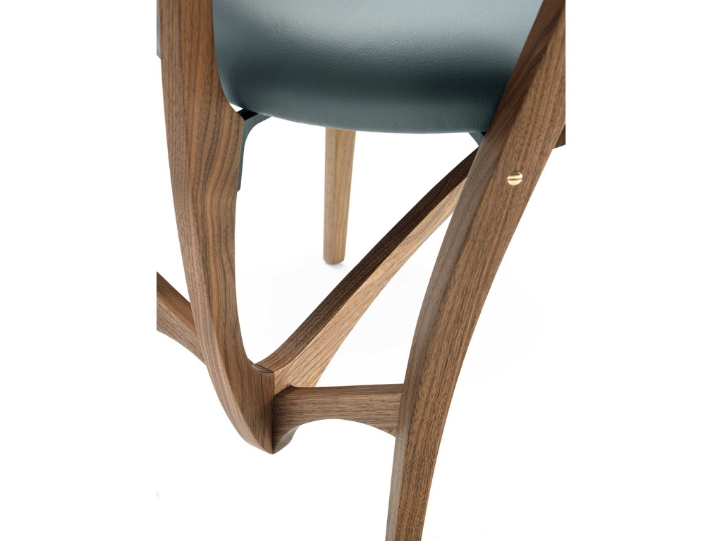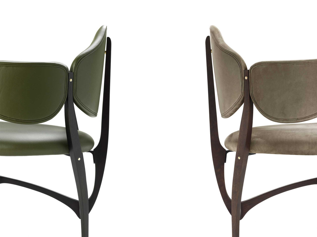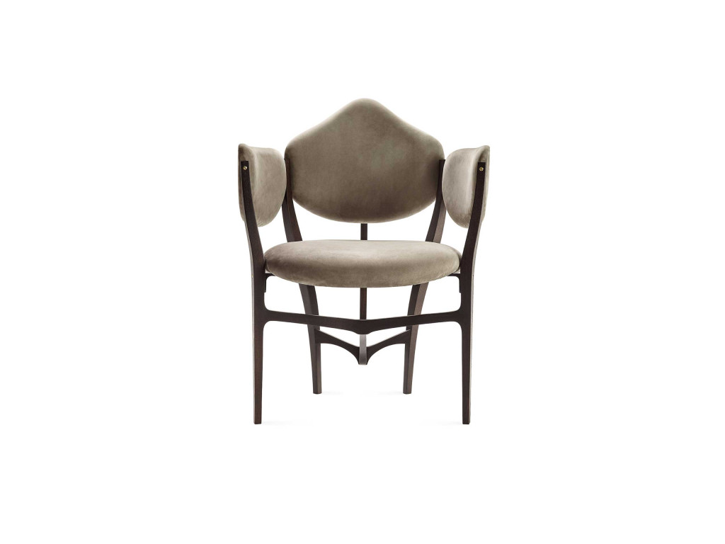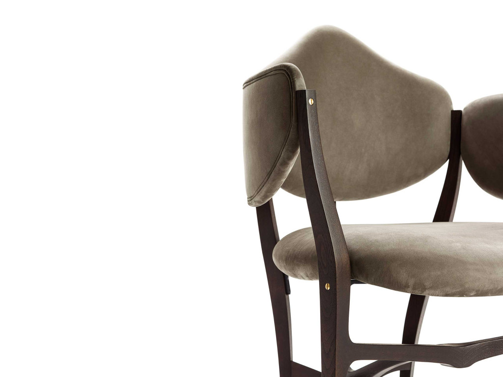 “Stellage” è il nome del collettivo – composto da Gabetti & Isola, Raineri – vincitore del concorso bandito nel 1952 dalla di Camera di Commercio di Torino per la progettazione e l’allestimento dell’edificio e degli arredi della nuova Borsa Valori. Il nome si presenta già come una dichiarazione d’intenti: il termine infatti indica un particolare tipo di contratto finanziario che consente di limitare al massimo la perdita di un’operazione. La scommessa, sicuramente vincente, ha portato questa seduta a diventare un’icona del design e a prendere parte ad importanti collezioni, come quella permanente del Moma di New York. Frutto di una ricerca intima e personale, il progetto si distingue per il suo stile unico e fortemente riconoscibile. Realizzata da alcuni artigiani torinesi con grande sapienza ed estrema cura per il dettaglio, la poltroncina rispecchia lo stile neoliberty caratteristico del capoluogo piemontese e di cui lo Studio sarà portavoce in Italia. Nella sua edizione originale la struttura – di faggio ebanizzato– presenta forme curvilinee e armoniche rifinite da giunti in metallo e viti a vista che le conferiscono un aspetto elegante e raffinato, mentre il rivestimento è in Resinflex, un materiale elastico e resistente agli agenti atmosferici.