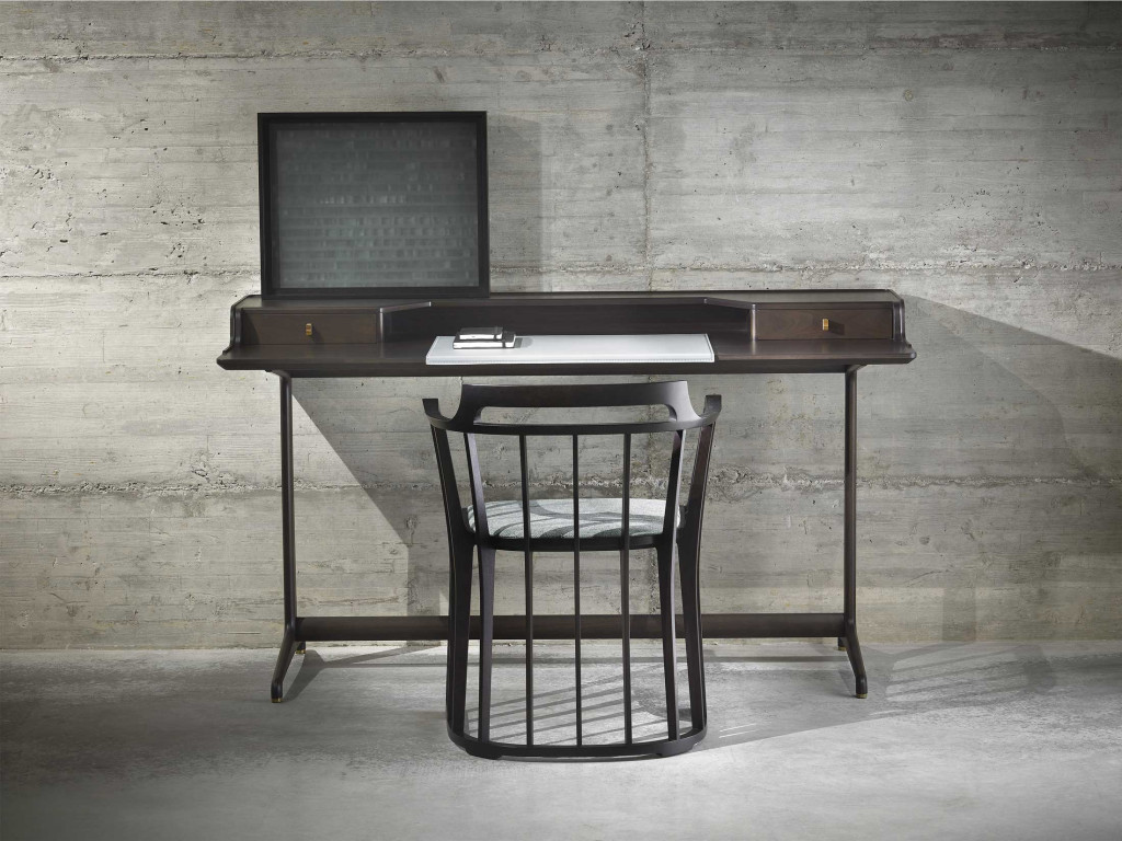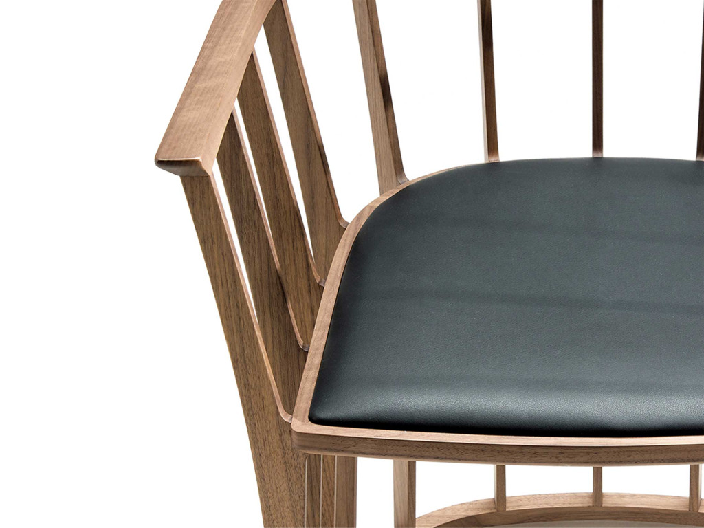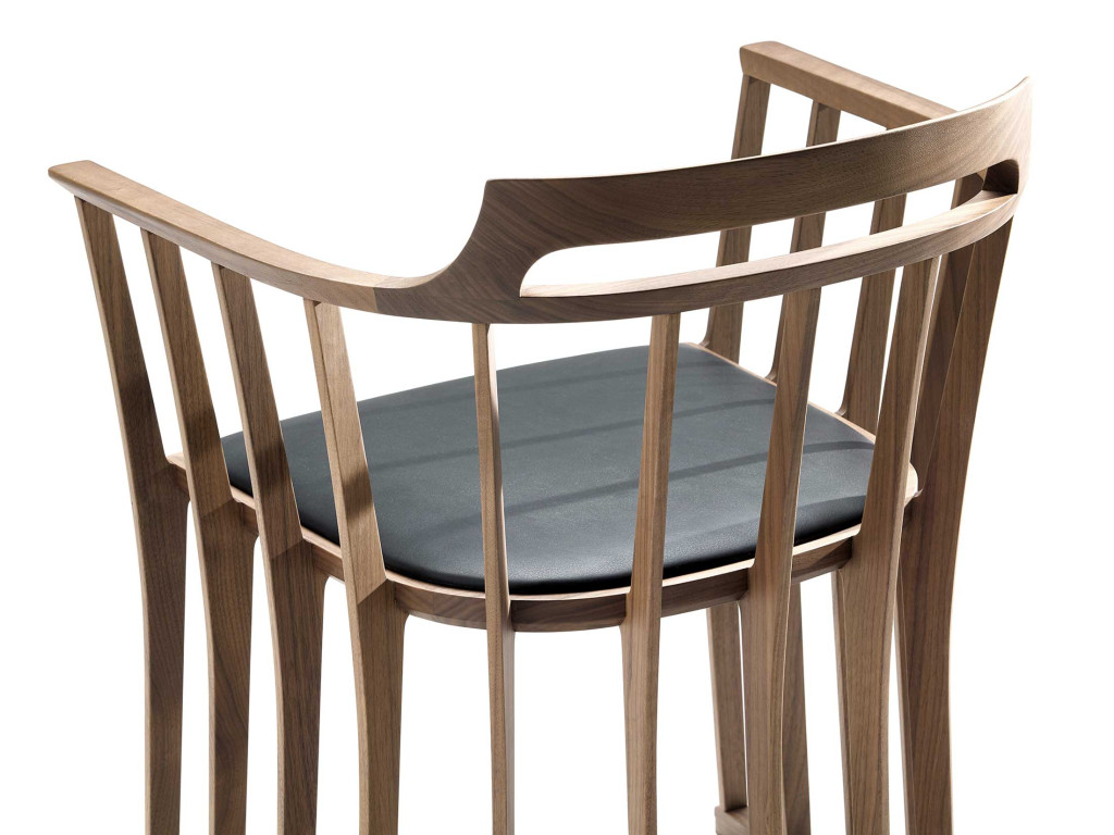 Tredici inserti verticali, tutti dello spessore di 10mm, disposti intorno alla seduta formano la spalliera e danno il nome a questa poltroncina del designer Giuseppe Casarosa. Presentata la prima volta nel 2019, è realizzata in massello di noce americano: i tredici montanti si raccordano nella base di un semicerchio in massello; nella parte superiore in una struttura a semicerchio, formando...