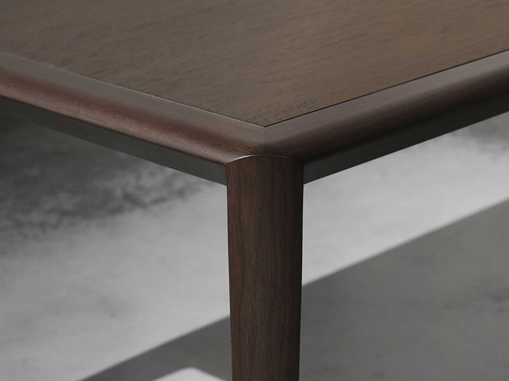Evenmore: a solid wood rectangular frame accommodates four legs that create a masterful Japanese-inspired joint. In its many sizes, the frame can be finished with a wood, glass or marble top. The result is very interesting, very compelling. Its perfect proportions and impeccable execution, make Evenmore a product that shines on its own, though it goes perfectly well with any other product by Ceccotti Collezioni, and “Evenmore”.